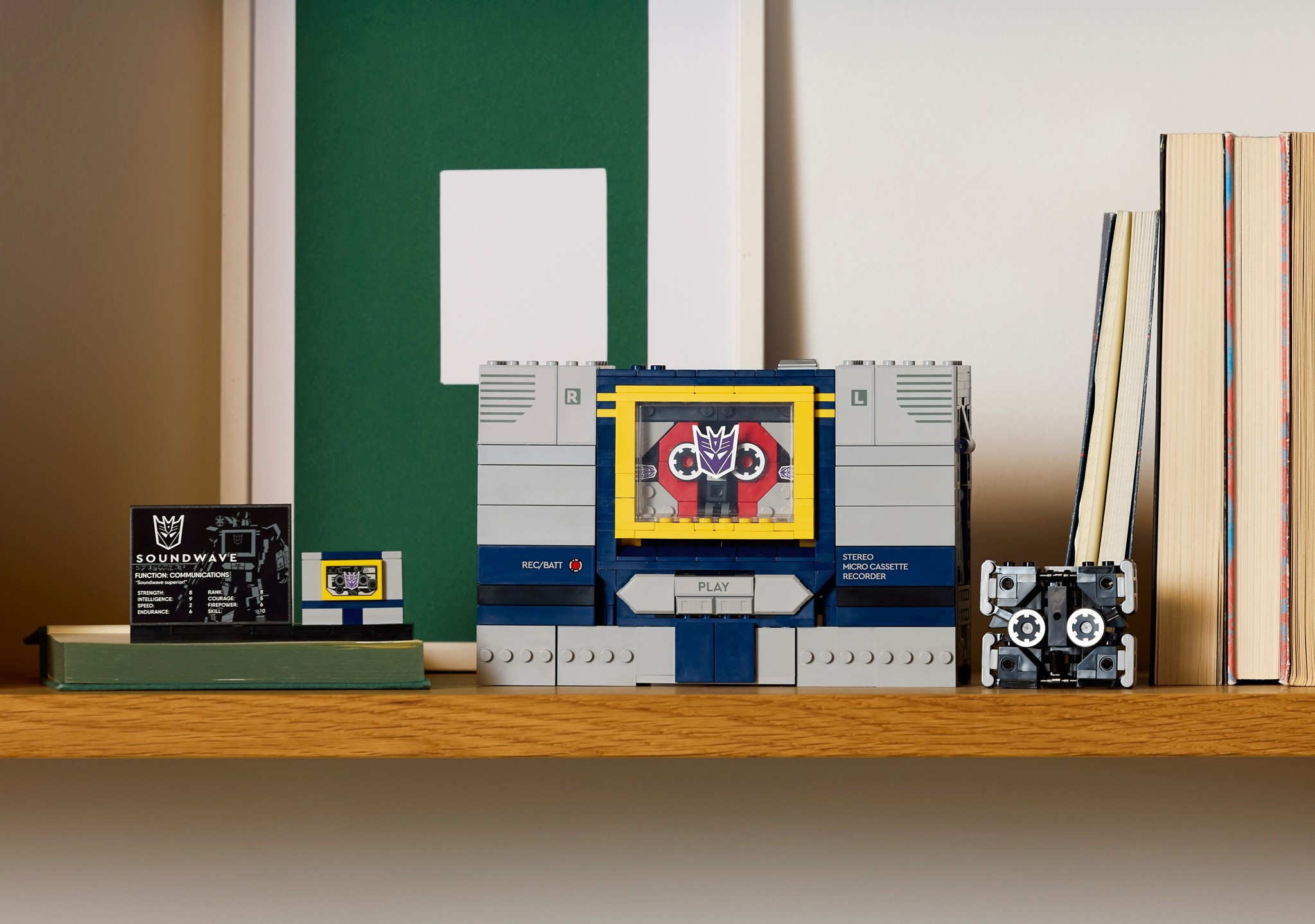 ▲ 樂高這次推出的音波一樣出自 1980 年代的 G1 版本。音波是狂派裡的情報官,能夠變身為卡式錄音機,竊聽所有通訊。胸前的迷你磁帶戰士個個身懷絕技,是狂派最受歡迎的角色之一。!