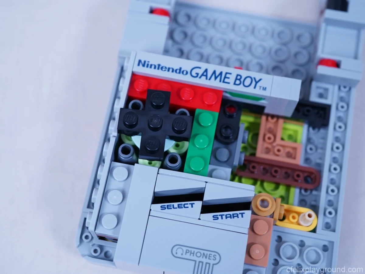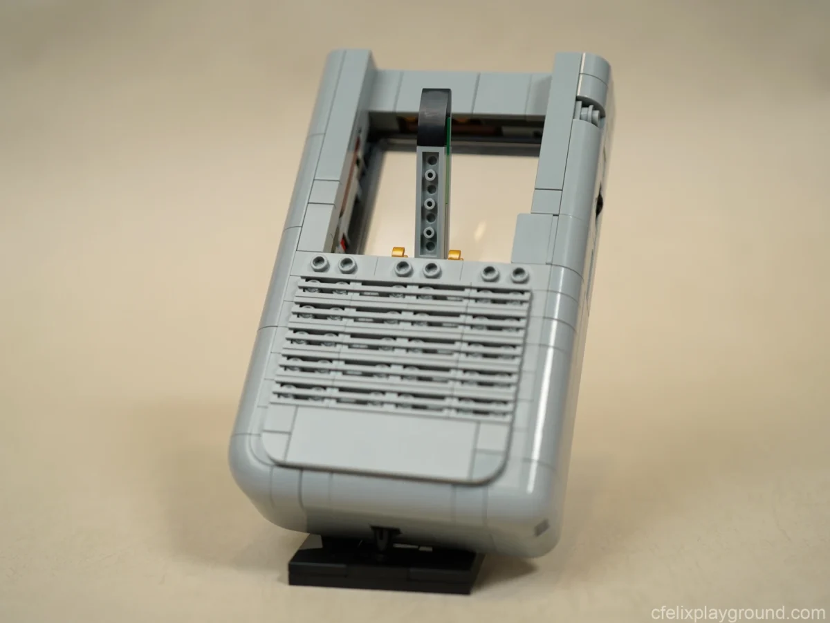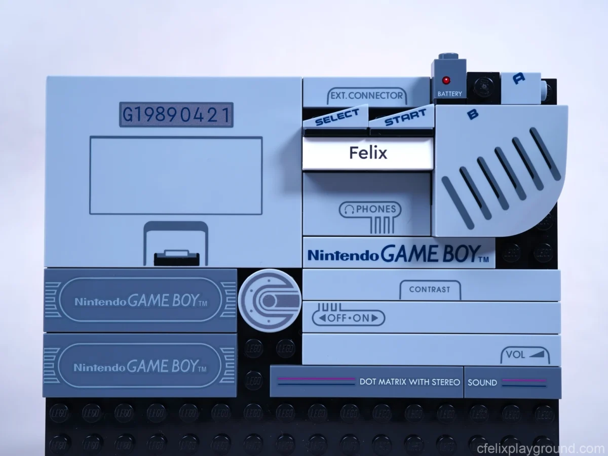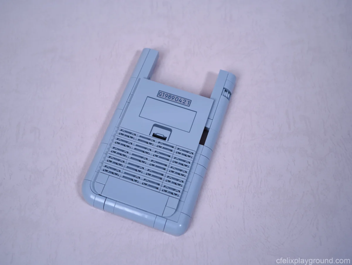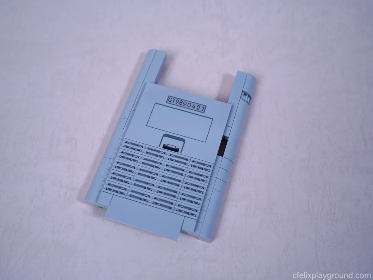 ▲ 第二包則是背板開始,用了非常多平滑磚做出完美的線條。背後電池蓋是一片 6 x 8 的印刷磚,原本序號的地方改成了「G19890421」,這是日本版 Game Boy 首次販售的日期,又一次完美的樂高彩蛋!