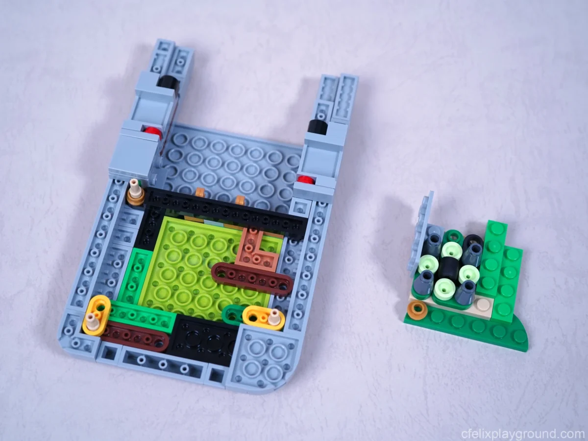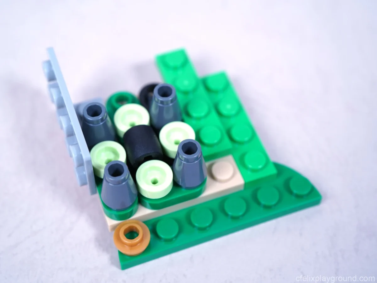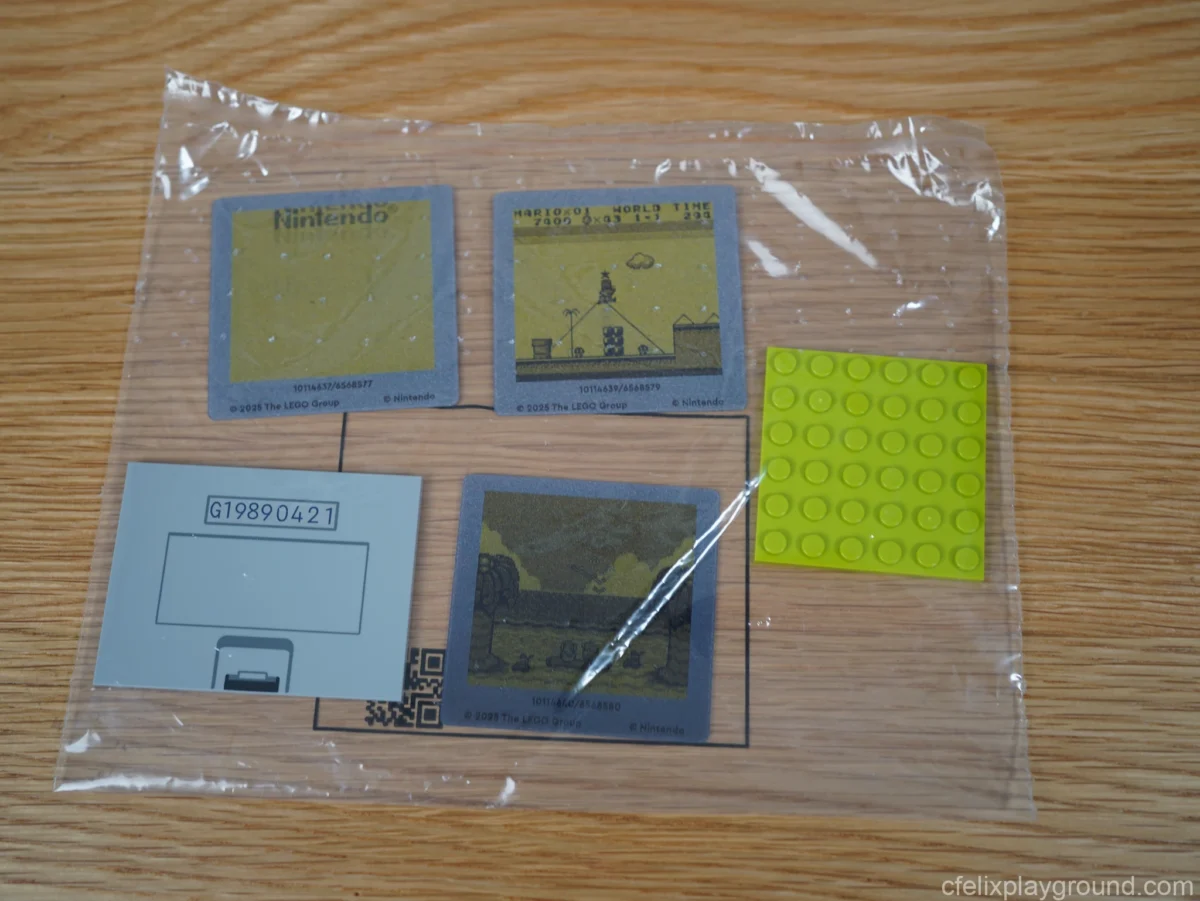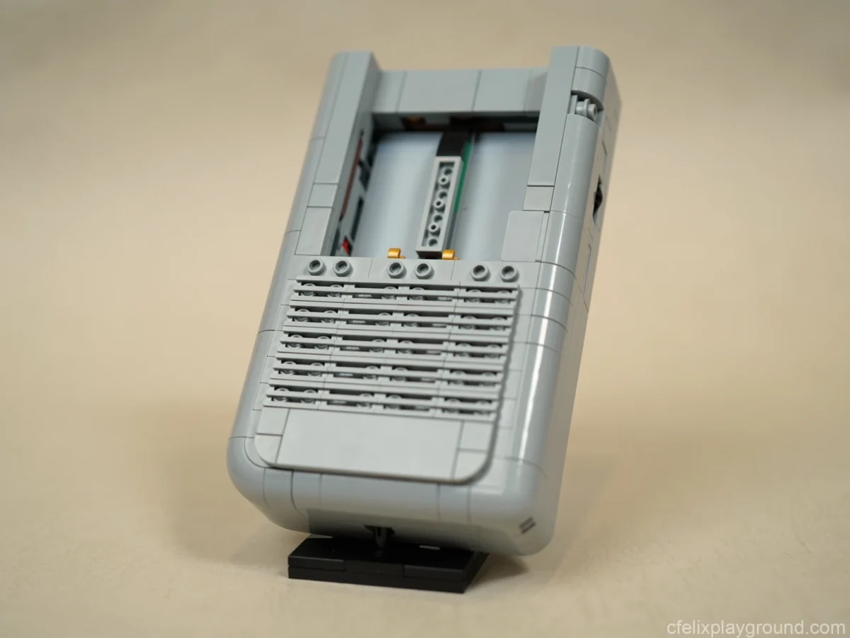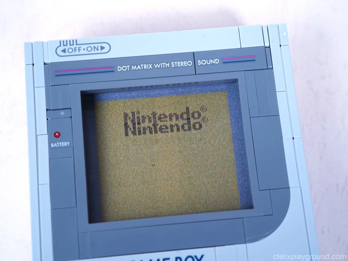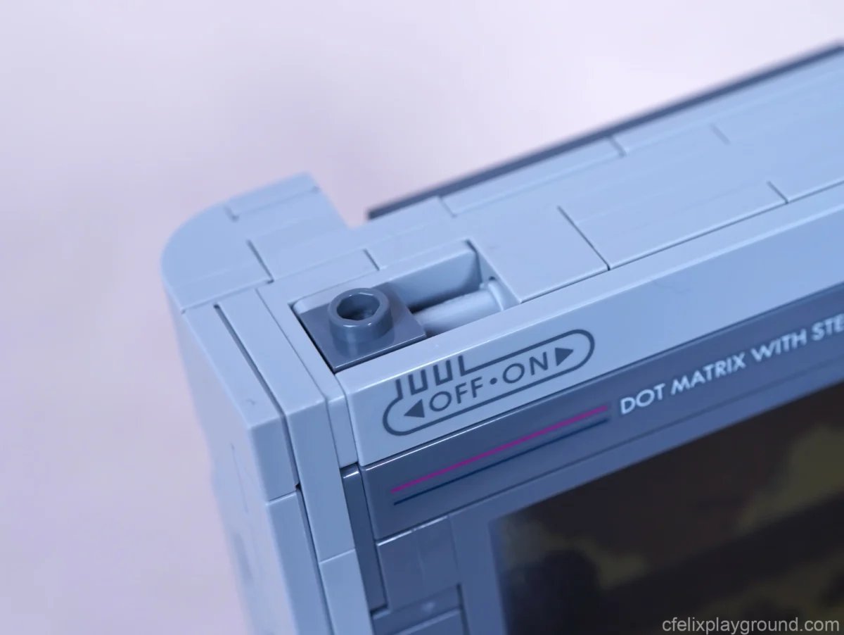 ▲ 第二包則是背板開始,用了非常多平滑磚做出完美的線條。背後電池蓋是一片 6 x 8 的印刷磚,原本序號的地方改成了「G19890421」,這是日本版 Game Boy 首次販售的日期,又一次完美的樂高彩蛋!