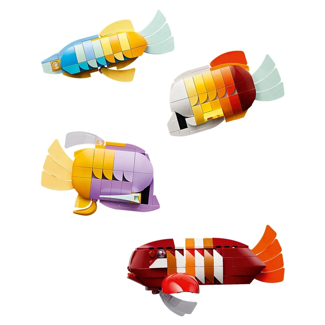 ▲ 缸內包含四條熱帶魚,不過值得一提的是,這四條魚並不是參考真的熱帶魚,而是設計師自己做出來的!另外魚鰭是全新開模的零件,而且超級萬用!從背鰭、尾鰭、腹鰭都可以用,真的很厲害!