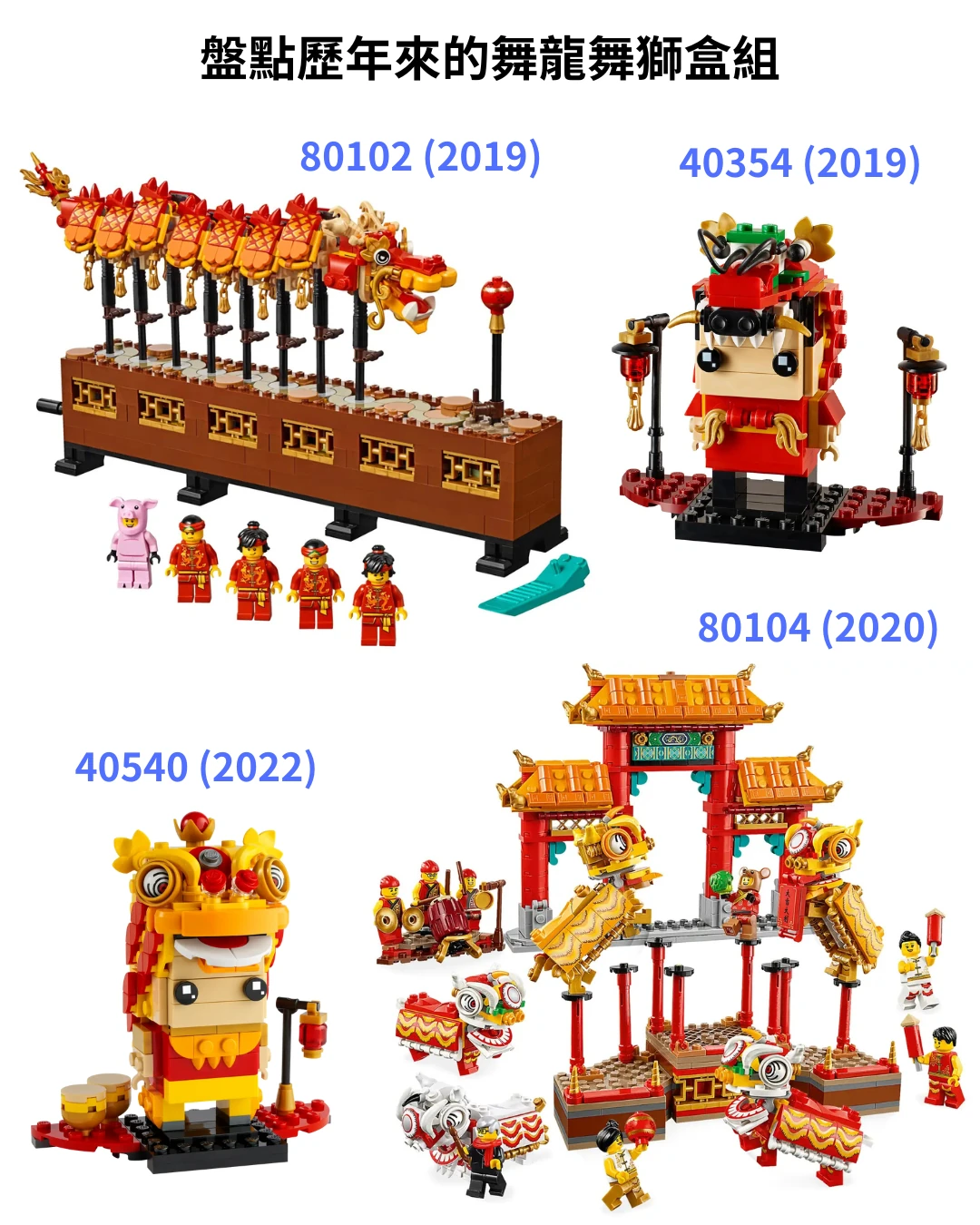 ▲ 除了最新的「40915 舞獅」,之前還發行過兩款 BrickHeadz 以及兩款新春盒組!大家收集了哪幾盒呢?