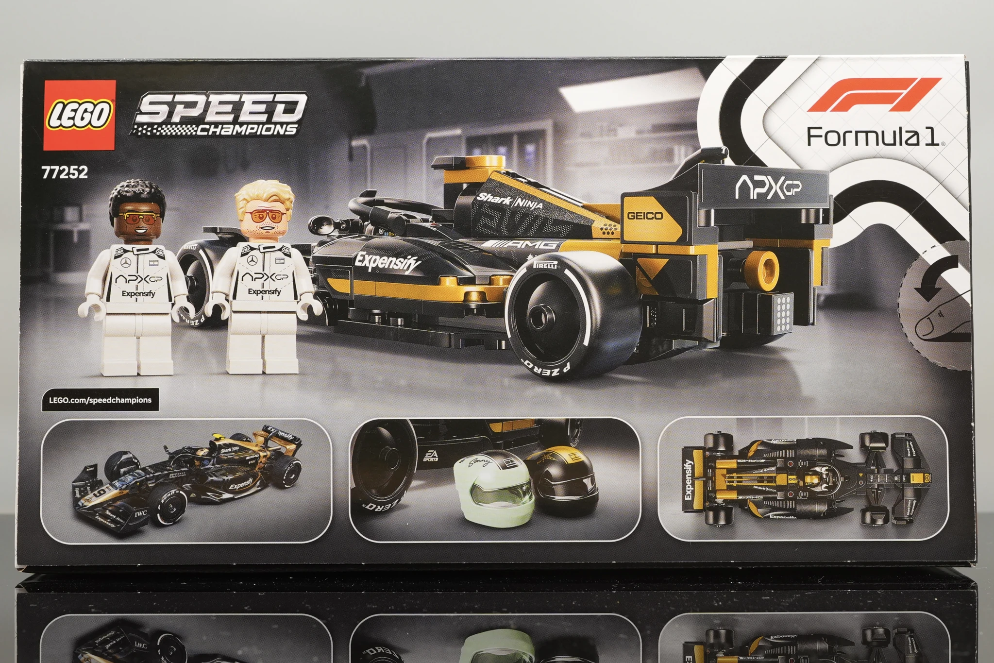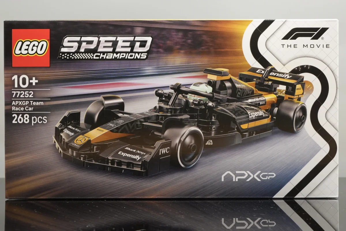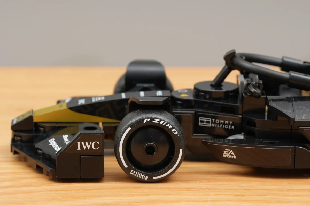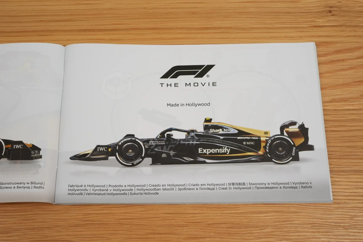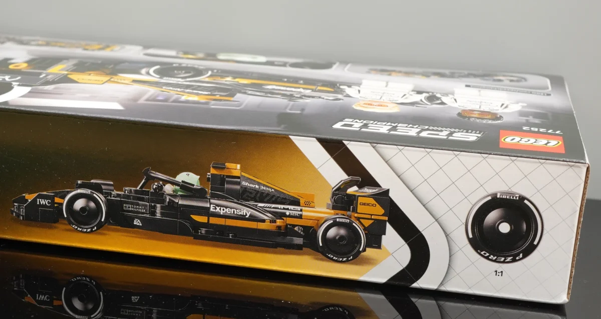 ▲ 77252 的盒繪非常漂亮,沿續去年 Speed Champions 的設計,不過把右上角的小字換成了「F1 The Movie」,1:1 是倍耐力的車胎。