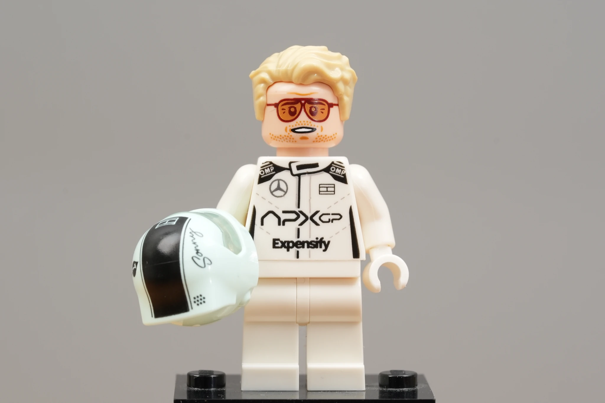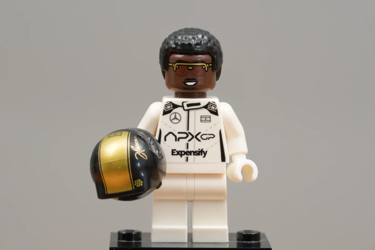 ▲ 首先登場的就是企圖東山再起的老鳥 Sonny Hayes(桑尼・海耶斯,由 Brad Pitt 飾演)。他身穿 APXGP 全盛車隊的賽車服,搭配一頭金髮,雖然有點年紀了但魅力不減。這也是布萊德・彼特首次化身為樂高小人偶!