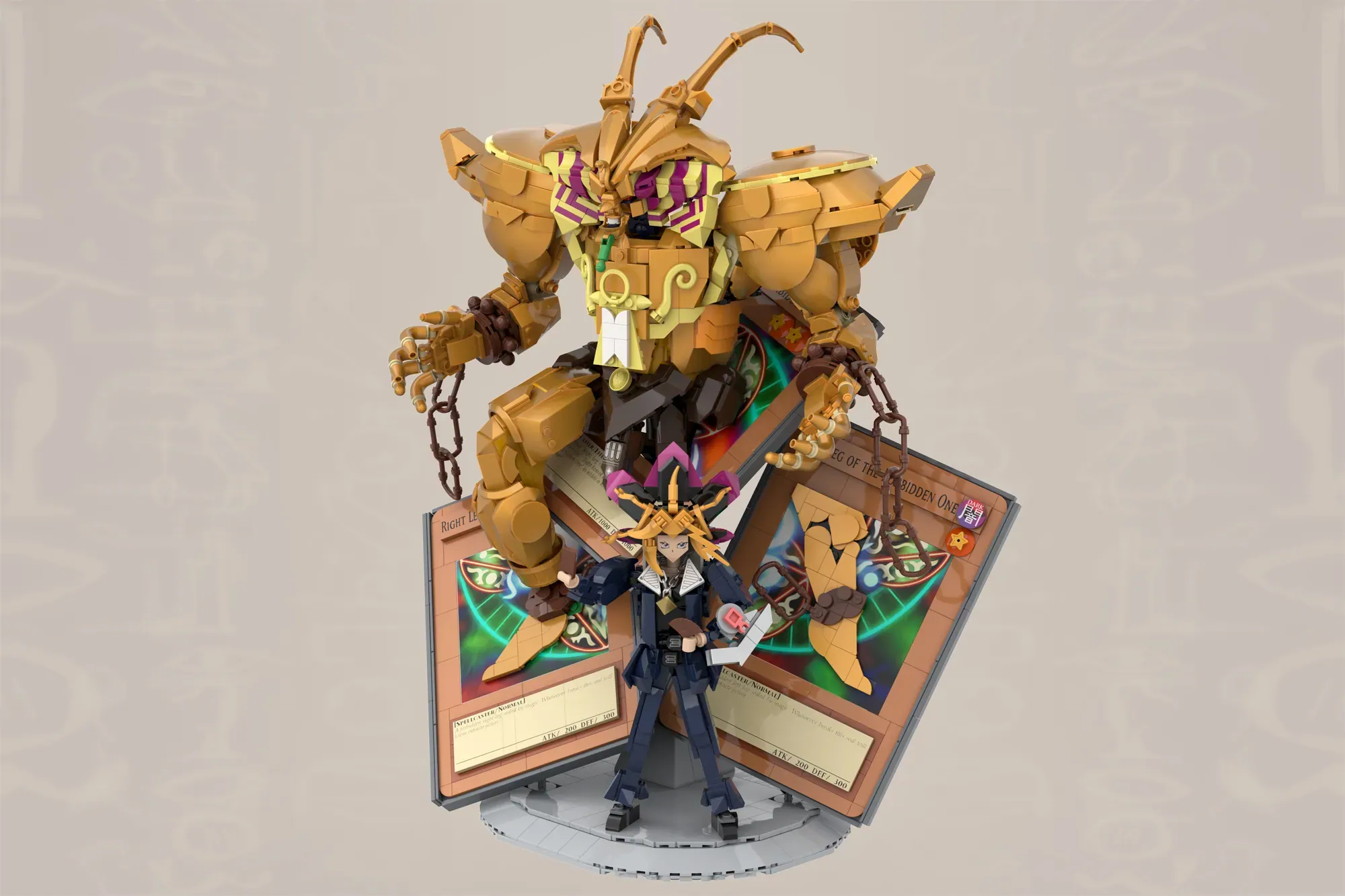 ▲ 集齊五張手牌,召喚黑暗大法師吧!這件作品使用接近上限的 1913 片,拼出《遊戲王》最經典的一幕!黑暗大法師是被封印的牌組,集齊頭部、雙手與雙腳,就能解放傳說中的怪獸,直接獲勝!