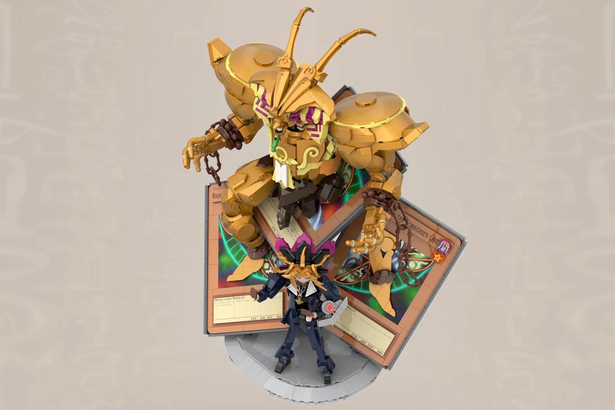 ▲ 總共使用 839 片積木,裡面還藏著召喚三幻神的三隻祭品,是超級可愛的小彩蛋!遊戲的小人偶還原度也很高,手上拿著決鬥盤和神之卡。